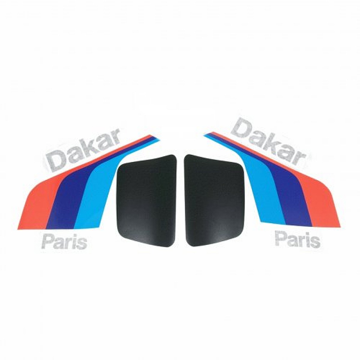 Incluye tres franjas MotorSport, 2 Adhesivos París, 2 Adhesivos Dakar, 2 adhesivos protectores negros