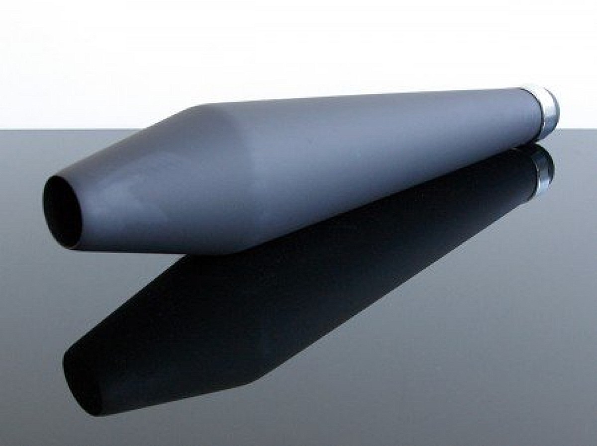 Silencioso deportivo tipo Norton negro largo 485 mm